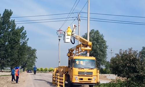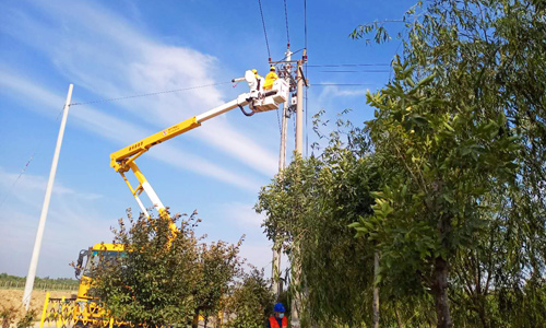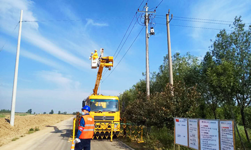 以下施工現場是,鐵路線油井支線1號桿和15號桿帶電加裝占位器,2號桿帶電加裝驗電環,施工單位是東營華昌電力工程有限公司。