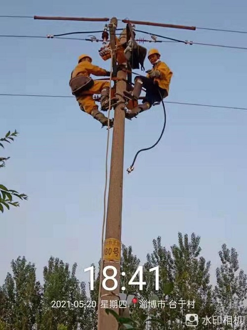 2021年5月20—21日淄博高青1OkV線路遷改!帶電拆、打火現場。