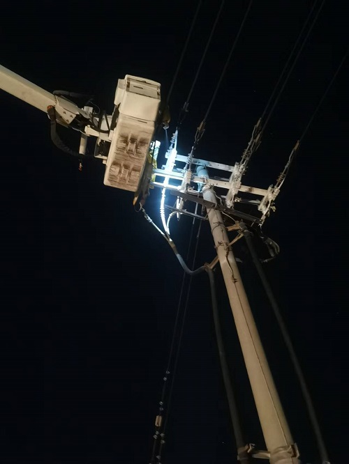 2024年12月31日,10kV東營(yíng)線001#桿帶電更換刀閘,下面是施工現(xiàn)場(chǎng):