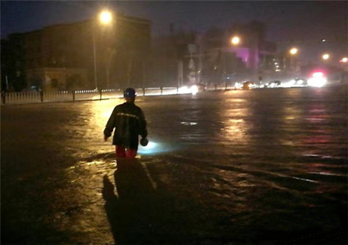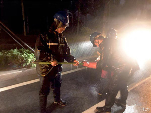 【保電抗洪 連夜戰臺風】8月19日,臺風“溫比亞”過境山東,東營境內普降大暴雨。19日晚,東營華昌電力工程有限公司響應國網東營市東營區供電公司號召,派遣員工連夜開展雨中巡線,保障西二路南泵站等城市多處排水設備的正常供電。部分路段水深嚴重,車輛無法進入,電力工人蹚過齊腰的積水區,冒著大雨開展搶修。