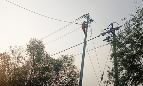 東營華昌電力工程有限公司進行10kV王崗線武王分支線絕緣化改造工程。下圖為現場施工圖: