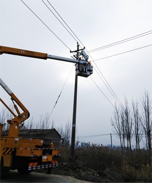 東營華昌電力工程有限公司現場施工,下圖為于林線南三臺區5號桿帶電打火,
