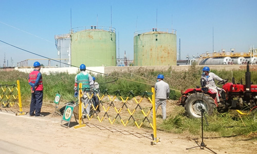 秋高氣爽,天高云淡;華昌決戰方家線。2020年9月9日,10千伏方家線放線現場,下面是現場施工圖: