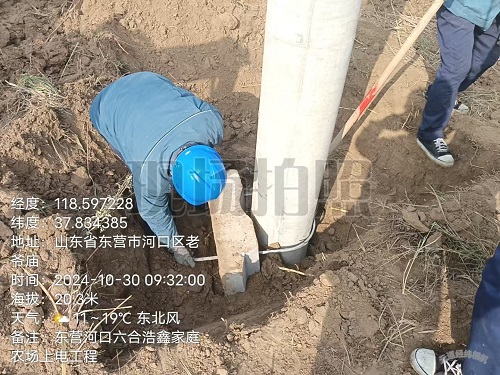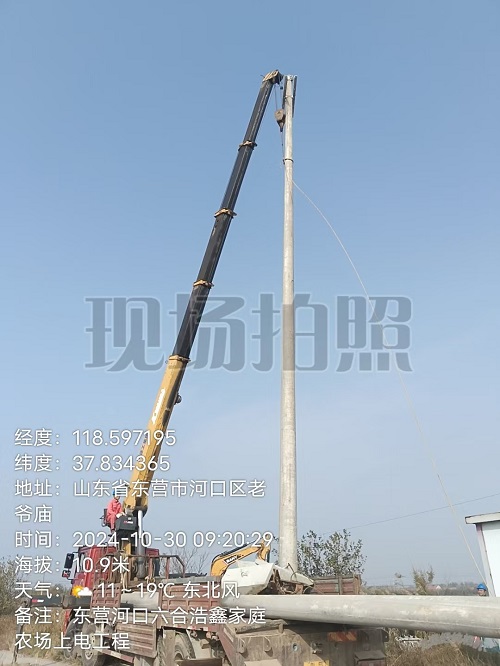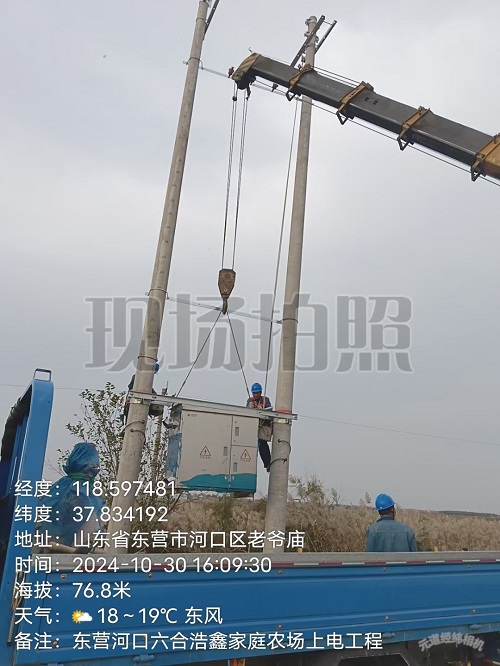 2024年10月30日,河口區浩鑫家庭農場上電工程施工現場: